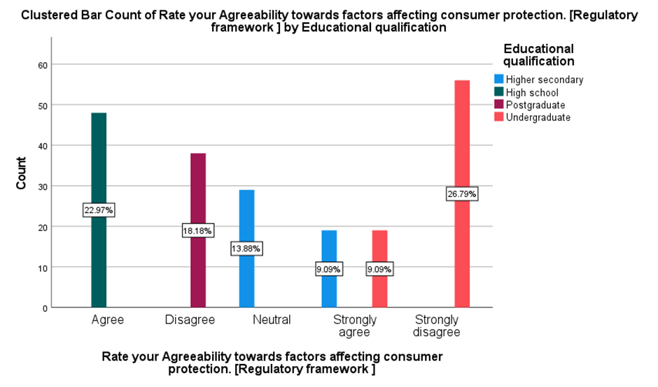 LEGEND: Fig 3 represents the agreeability towards factors affecting consumer protection [regulatory framework] and educational qualifications of the respondents.