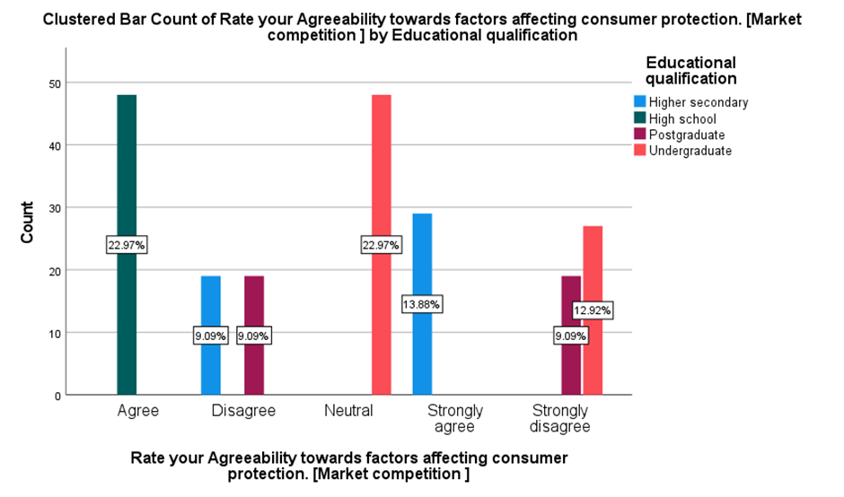 LEGEND: Fig 5 represents the agreeability towards factors affecting consumer protection. [ Market competition] with the reference of educational qualifications.