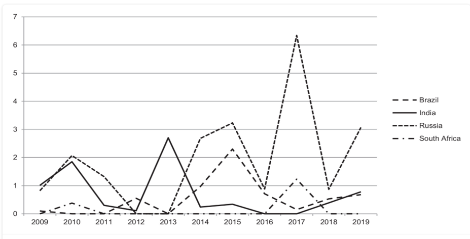 [8] The BRICS Countries’ Bilateral Economic Relations, 2009 to 2019: Between Rhetoric and Reality Bas Hooijmaaijers https://orcid.org/0000-0002-1701-6290 [email protected] all authors and affiliationsAll Articleshttps://doi.org/10.1177/21582440211054128
